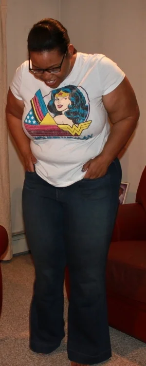I am hippy with a big butt, so my concern is the gap between my jeans and waist. So the first thing I look for is a jean with at least 2% stretch. Whoever decided to add stretch to jeans is a genius and thank you kindly! The amount of stretch determines whether I can wear my regular size 16 or go up a size. I will go up in a pair of jeans only if the waist gap is not serious. Lane Bryant Jeans work great for me, but that has been years of trial and error while shopping. I have learned not to stress about the size on the tag because there are good resources out here to tailor my clothes. Understanding your body type is your biggest arsenal in purchasing the right jeans. If you are bottom heavy, then you definitely want to find a pair that has more room in the hips, or if you have no hips, then you want to find something that is more structured but provides room where you need it. No one these days should walk around in sad butt drooping jeans. My resources for jeans has been Lane Bryant Genius Fit, Torrid Stiletto, and NYDJ. Need help? Just hit me up at styleoversize@gmail.com. Until next time lovers!