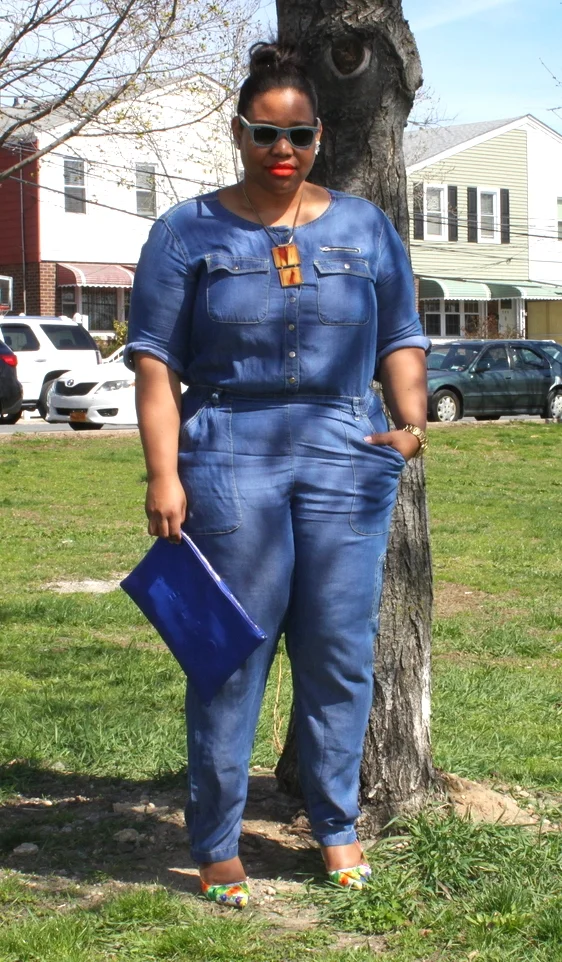 With all the options in jeans out there in plus, there was something that I wanted that I just could not find, and that was a denim jumpsuit. Last year I scoured numerous sites and stores to find the right jumpsuit. There were two I saw last year- one was halter style (which for me means wearing an uncomfortable strapless bra), and another was wide leg (which meant I might have to get it tailored or be forced to wear heels with it). Since these were not the jumpsuits for me, I moved on and just wore my overalls. Fast forward a year, and now not only did I find my perfect jumpsuit, there were three out there I liked.