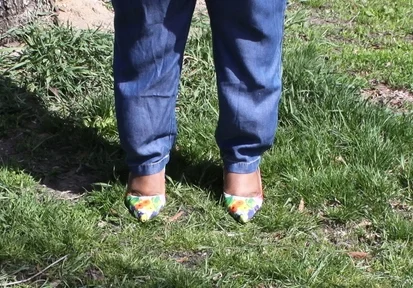 Like John Weatherspoon said in Boomerang, "You can't just stop right there, you got to coordinate!"; I didn't stop at the jumpsuit, I am wearing Denim Wayfarers from Ray Ban. I saw these in Nordstrom's Spring Lookbook, and they are made out of real denim! As a denim addict and shopaholic, I just had to have these. I am going to be living in these shades all season. I am wearing Ivanka Trump floral pumps, and my clutch is from Sole Society. If you can get these pumps, please do, they are a decent height and are well cushioned.